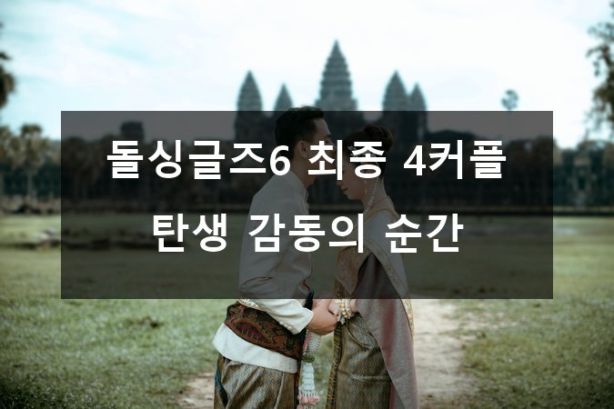 안녕하세요, 여러분! 오늘은 많은 분들이 손꼽아 기다려온 ‘돌싱글즈6’의 최종 4커플 탄생 소식을 전해드리려고 해요. 🎬💑 이 프로그램은 이혼 경험이 있는 싱글 남녀들이 다시 사랑을 찾아가는 과정을 담아내면서 큰 공감과 화제를 불러일으켰죠. 이번 시즌 역시 진한 감동과 설렘으로 가득했답니다! 😊