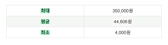 가장 비싼 곳은 350,000원, 가장 저렴한 곳은 4,000원입니다.