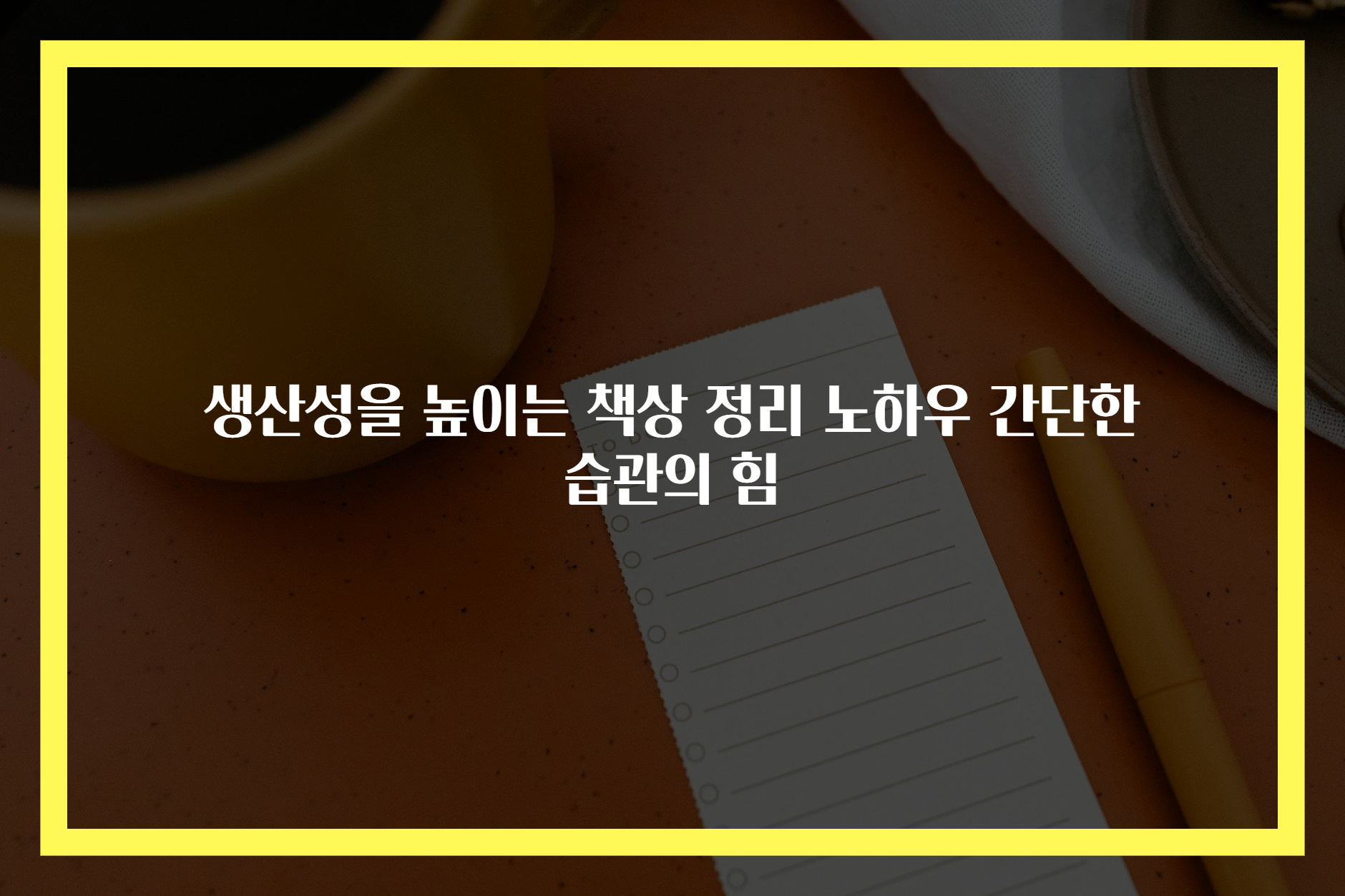 메타 설명: 생산성을 높이는 책상 정리 노하우와 간단한 습관의 힘을 소개하는 글. 정리의 중요성과 이를 통한 정신적 공간 정리의 필요성을 다룹니다.