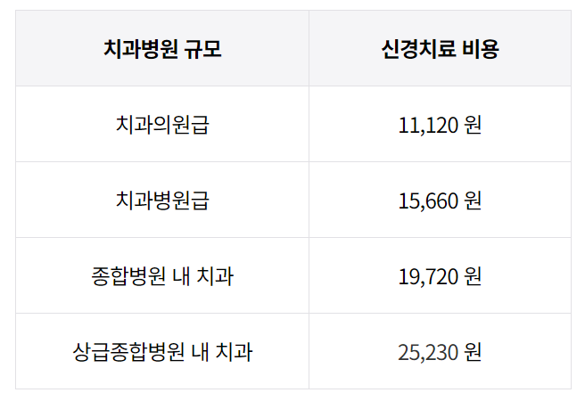 병원규모별 신경치료 비용은?
