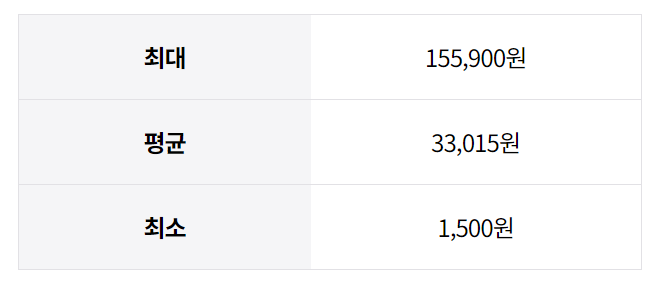 가장 비싼 곳은 155,900원이었습니다.