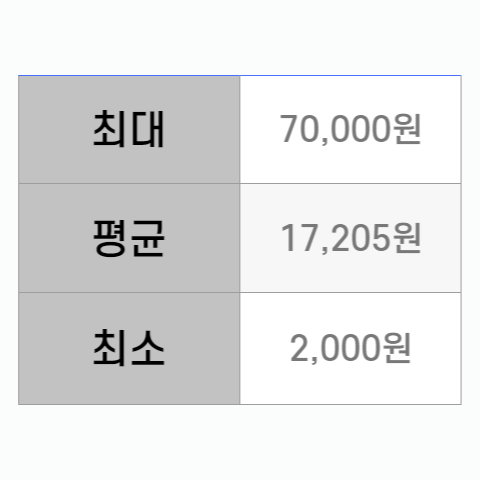 저렴한 곳에서는 2,000원, 가장 비싼 곳에서는 70,000원에