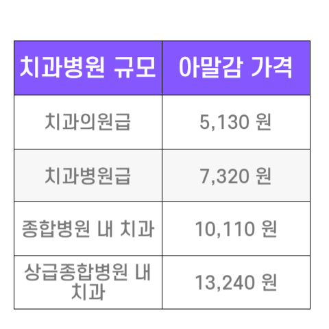 아말감의 가격은 치과의원급에서는 5,130원,