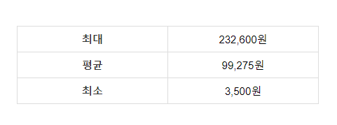 가장 비싼 곳은 232,600원이었습니다.