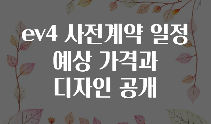 ❓ EV4 사전계약 일정, 예상 가격과 디자인을 미리 알아볼까요? 🚗✨